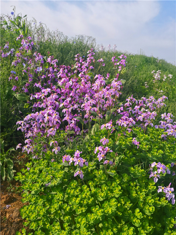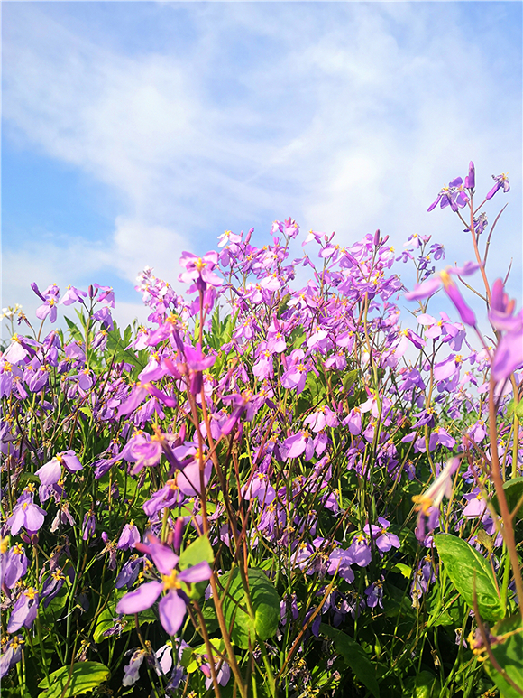 據(jù)了解,諸葛菜也叫二月蘭,因早春農(nóng)歷二月前后開花,所以叫二月蘭,花開溫柔,娟秀,清雅,很是招人喜歡。而且具有較強的耐寒性與適應性,自繁能力比較強,一次播種能年年自成群落,能夠有效控制裸地揚塵起沙、抑制雜草生長。諸葛菜花花期相當長,能夠從早春時節(jié),一直開到暮春初夏間,當百花盛開時,它依然露著笑臉。因此著實是春天里的“早到遲退”之花。③5