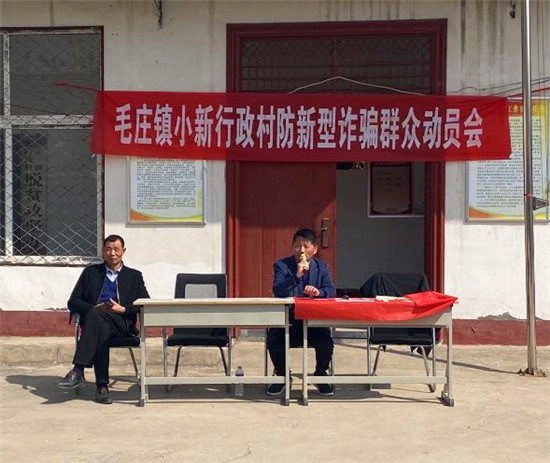 “父老鄉(xiāng)親們,通知退款、虛假中獎(jiǎng)、匯錢救急、假冒熟人、高薪招聘、刷單返利,這些都是詐騙分子常用的套路。咱們?nèi)绾畏婪赌??下面我講講‘九個(gè)凡是’和‘五個(gè)一律’……”毛莊鎮(zhèn)宣傳委員、副鎮(zhèn)長馬巖拿著麥克風(fēng)向村民耐心講解防詐騙知識(shí)。