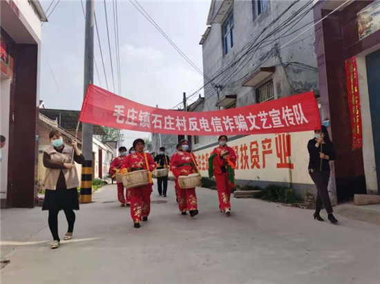 “父老鄉(xiāng)親聽我說,現(xiàn)在騙子真是多。莫占便宜要牢記,發(fā)家致富靠自己……”毛莊鎮(zhèn)石莊村這樣一支反電詐文藝宣傳隊(duì)瞬間吸引了人們的眼球?!艾F(xiàn)在我村的年輕人大部分都出去掙錢去了,在家的大部分是老人,我們幾個(gè)一合計(jì)把宣傳單上的內(nèi)容編成順口溜,這樣更好懂、更好記!”石莊村文藝宣傳隊(duì)的張秀芬笑著說。