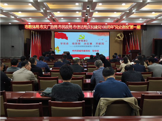 4月13日晚7:00至8:30,項(xiàng)城市教育體育局黨史夜校學(xué)習(xí)班第一期在該局會議室正式開班。來自項(xiàng)城市教體局、文廣新局、民政局、信訪局的近200名黨員參加了此次培訓(xùn)。