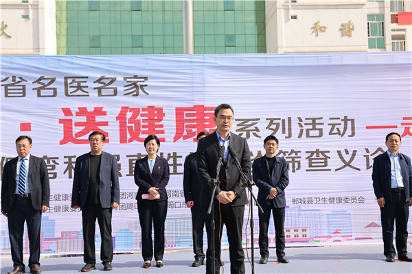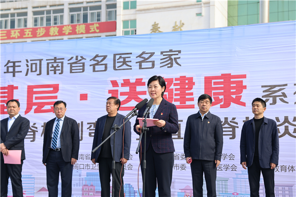 羅文閣致歡迎詞。她說,只有全民健康才有全面小康。今天,河南省在校青少年脊柱側(cè)彎和強直性脊柱炎篩查義診活動走進鄲城,對鄲城孩子們的健康成長是件好事、實事,我們將全力以赴,做好配合,爭取讓項目惠及更多患者,同時希望全縣廣大醫(yī)護工作者以這次活動為契機,珍惜難得的學習機會,從名醫(yī)名家身上,學習出類拔萃的醫(yī)療技術(shù)、德藝雙馨的大醫(yī)情懷、心系群眾的高尚情操、不辭勞苦的敬業(yè)精神,不忘初心、牢記使命,勤學苦練、提升本領(lǐng),為鄲城創(chuàng)建國家健康縣城、做好鞏固拓展脫貧攻堅成果同鄉(xiāng)村振興有效銜接作出更大貢獻。