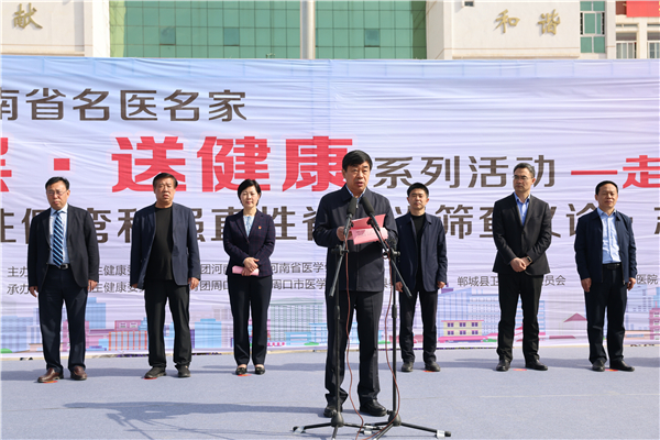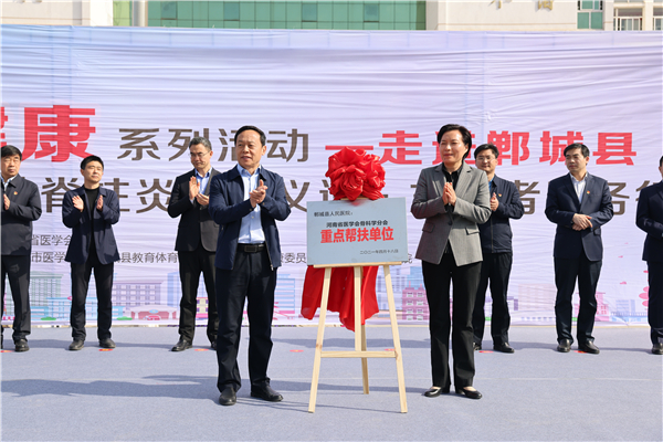 河南省衛(wèi)健委副主任劉延軍,光明日報社河南站站長王勝昔,省衛(wèi)健委宣傳處處長楊力勇,省醫(yī)學會副會長兼秘書長王偉,省人民醫(yī)院副院長張連仲,團河南省委學校部副部長張艷斌,省骨科學會主任委員、省人民醫(yī)院脊柱脊髓外科主任高延征,周口市人大常委會副主任、鄲城縣委書記羅文閣,周口市副市長秦勝軍,市衛(wèi)健委主任金玉貞,鄲城縣副縣長張凱,縣衛(wèi)健委主任付登霄,縣人民醫(yī)院院長于健,縣教體局局長羅明黨等出席啟動儀式。儀式由鄲城縣人民政府縣長李全林主持。