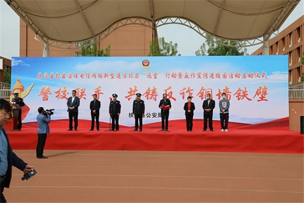 為進一步提高學生對電信網(wǎng)絡詐騙手法的識別和防范能力,4月18日9點30分,扶溝高中聯(lián)合扶溝縣公安局、扶溝縣教體局、電信運營商、銀行等單位共同舉辦了“警校聯(lián)手,共鑄反詐銅墻鐵壁”宣傳教育活動,本次宣傳教育活動也是扶溝縣反詐宣傳進校園活動的啟動儀式。