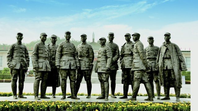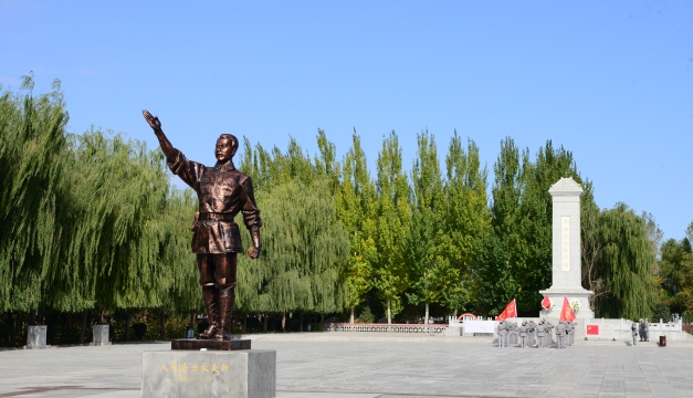 在甘肅省白銀市會寧縣紅軍會寧會師舊址內(nèi),有一座高33.33米,呈三塔環(huán)抱雄姿的紀念塔——中國工農(nóng)紅軍第一二四方面軍會師紀念塔。