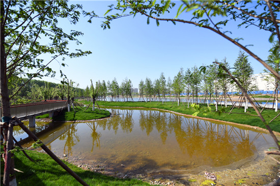 與城區(qū)的各個游園相比,此處稍顯僻靜,翠陰蒙密,再加上流水淙淙,更有風物清幽之感。閑暇之時,三三兩兩的居民結伴散步,大自然的靜謐與靈動在這里相交相融,讓人心曠神怡。