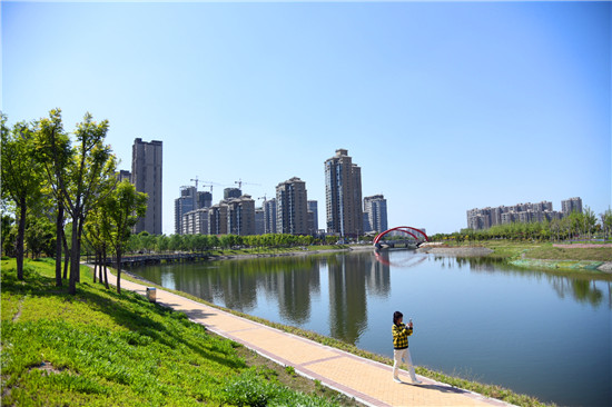 眼下雖不是詞中所描繪的初春時節(jié),但是暮春的水系風光更具詩情畫意。女媧路魚翔湖是一處以水凈化、水景觀、水科普為主的濱河濕地游園。漫步于此,新綠點綴其中,步道曲徑通幽,河水清澈透明,頓覺神清氣爽。沙河玉盤落珠節(jié)點,曲廊環(huán)繞,波光鱗鱗,垂柳慢舞,河流猶如飄帶蜿蜒流淌,一路步行聞花香聽鳥鳴,繪出一幅唯美畫卷。②9