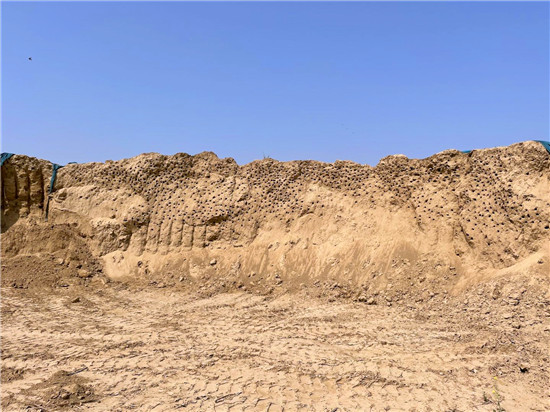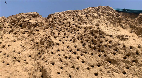 黃土堆壁上,鳥(niǎo)巢密布區(qū)域沒(méi)有覆蓋防塵網(wǎng)。邱一帆 攝