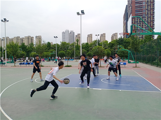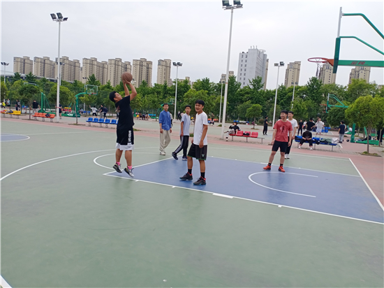 5月2日,記者在周口市體育中心籃球場(chǎng)地看到,市民們?cè)诩偃绽镞M(jìn)行體育鍛煉的熱情不減,他們紛紛來到籃球場(chǎng)打起了籃球,既鍛煉了身體,又度過了一個(gè)有意義的假期。②9