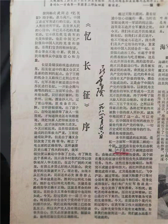 1982年3月16日,《人民日報(bào)》《解放軍報(bào)》等報(bào)發(fā)表《憶長征》序言。