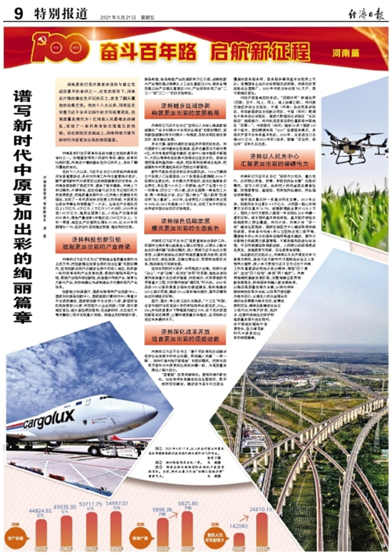 河南是我們黨開展革命活動(dòng)與建立黨組織最早的省份之一,在黨的領(lǐng)導(dǎo)下,河南這片鐫刻著紅色印記的沃土,發(fā)生了翻天覆地的滄桑巨變。黨的十八大以來,河南堅(jiān)定沿著習(xí)近平總書記指引的方向奮勇前進(jìn),把高質(zhì)量發(fā)展作為1億河南人民最根本的福祉,實(shí)現(xiàn)了一系列具有標(biāo)志性意義的突破。站在新的歷史起點(diǎn)上,河南將奮力譜寫新時(shí)代中原更加出彩的絢麗篇章。