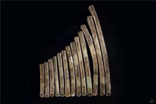 令人驚喜的是,墓葬還出土了一批豐富的音樂考古資料,發(fā)現(xiàn)了我國(guó)目前最早的骨排簫。