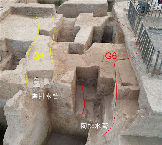 之后,考古隊新發(fā)掘出四組龍山時期陶排水管道,其中兩組位于南城門附近。2019年,又在城內(nèi)高臺式排房的室外墊土之下發(fā)現(xiàn)兩組東西向敷設(shè)的陶排水管道。這些陶排水管道,向西聯(lián)通這座古城的中軸線。這些陶排水管長35到45厘米,表面裝飾籃紋、繩紋和方格紋,兩端有子母口,節(jié)節(jié)套合,構(gòu)思精巧,它們或縱穿城墻基礎(chǔ),或沿排房建筑的外緣平行分布,兩端有進(jìn)、出水口,與城內(nèi)的東西或南北向的排水溝相連通,是目前國內(nèi)發(fā)掘的年代最早、最為完備的城市排水系統(tǒng),對于研究我國早期城市的水資源管理系統(tǒng)具有在重要的意義。從發(fā)現(xiàn)的陶排水管道的情況上我們可以大致推測,平糧臺城址可能受到水患,當(dāng)時先民始終關(guān)心如何把城內(nèi)積水排到城外。