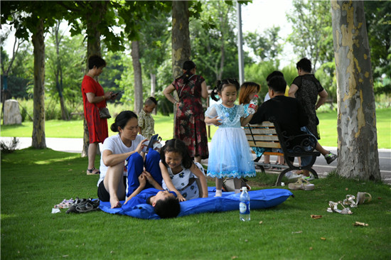 7月7日,不少市民帶著孩子在周口植物園內(nèi)休閑玩耍。進(jìn)入了炎炎夏日,周口植物園里清新的空氣、大片綠蔭、盛開的鮮花十分吸睛,市民在林中穿行休閑漫步、孩子們快樂(lè)地蕩秋千……這里成了市民游玩消暑的好去處。③2