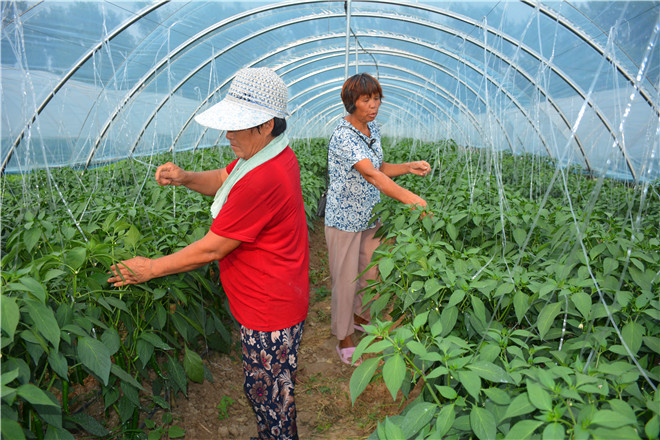圖二:7月13日, 合作社社員正在管理、查看韓國“美人椒”。