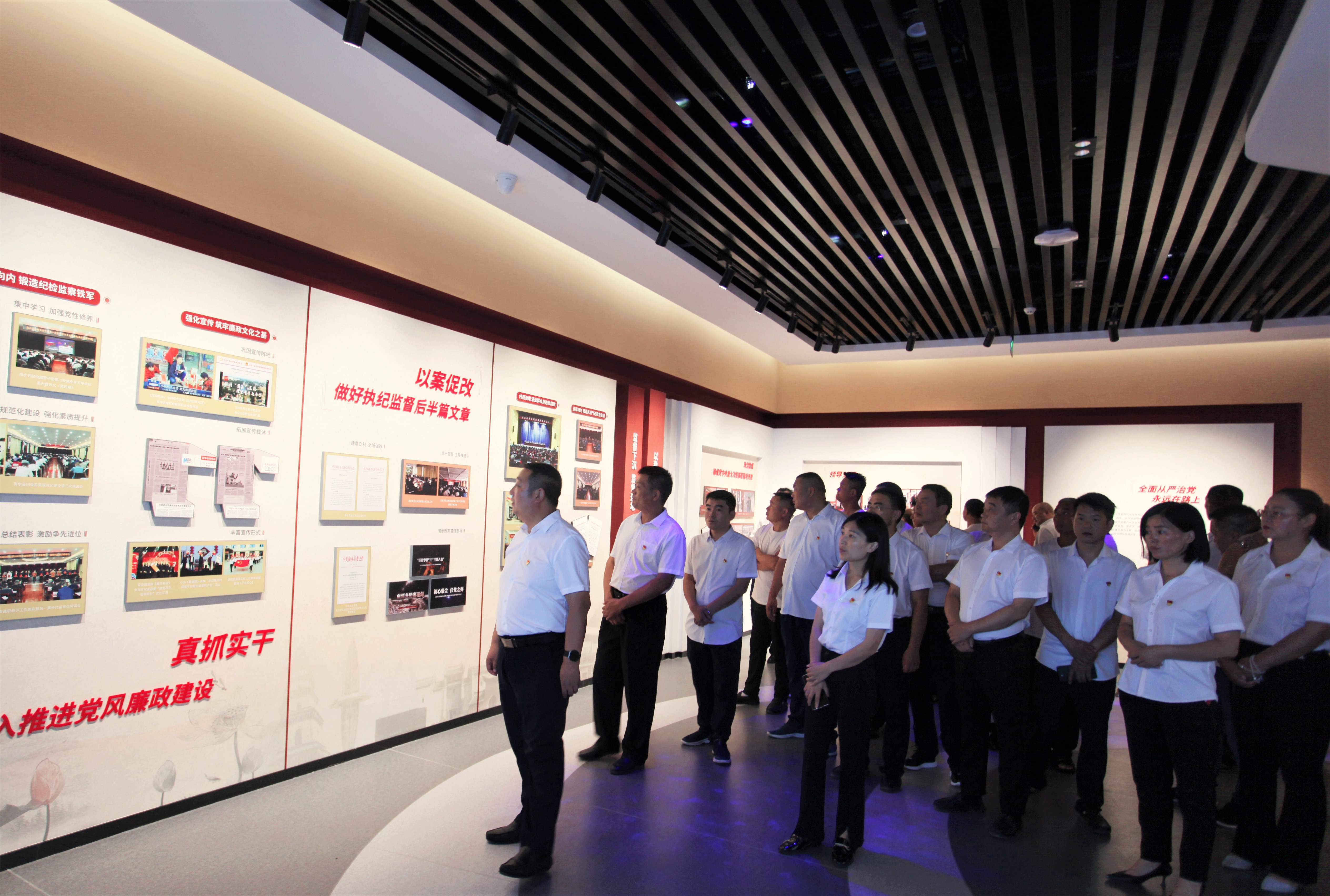 在講解員的帶領(lǐng)下,參觀人員認(rèn)真觀看了每一塊展板、每一張圖片、每一段視頻。廉政警示教育展廳內(nèi)綜合運(yùn)用圖文、場景再現(xiàn)、互動(dòng)體驗(yàn)及多媒體聲光電等形式,從歷史的深度展示了中國共產(chǎn)黨歷次黨代會(huì)不斷加強(qiáng)紀(jì)律建設(shè)、全面從嚴(yán)治黨的偉大歷程,又展示了黨的十八大以來查處的各級(jí)領(lǐng)導(dǎo)干部嚴(yán)重違紀(jì)違法和群眾身邊的“微腐敗”案例等,將廉政文化教育、反面典型教育、理想信念教育結(jié)合在一起,形式多樣,內(nèi)容豐富,既有警示又受教育。