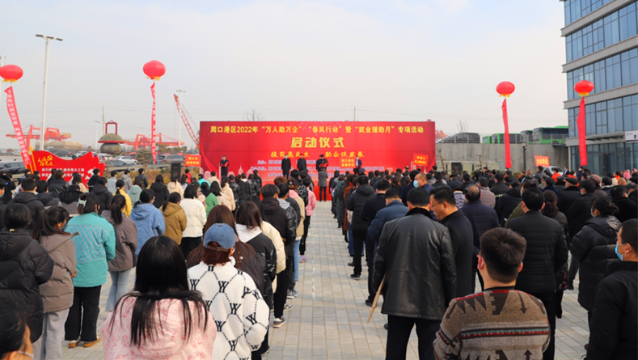 2月22日,周口港區(qū)舉辦2022年“萬人助萬企”“春風(fēng)行動(dòng)”暨“就業(yè)援助月”啟動(dòng)儀式,通過舉辦一系列活動(dòng),為企業(yè)和求職者牽線搭橋。港區(qū)黨委書記孫鵬宣布啟動(dòng)儀式開幕,管委會(huì)主任胡軍華在儀式上致辭,港區(qū)領(lǐng)導(dǎo)杜廣賢、劉學(xué)慶、李素芹參加活動(dòng)。