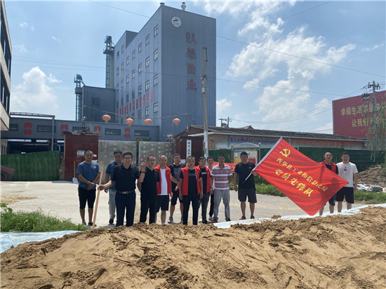 西華縣“萬人助萬企”活動辦公室副主任、縣工信局局長趙宏偉立即向縣“萬人助萬企”指揮部進行了匯報,并組織工信局防汛應急突擊隊16名隊員迅速趕往西華縣凱馨面粉廠,裝沙袋,加固糧倉,運沙土,筑牢廠區(qū)第一道防水隔離帶。防汛應急突擊隊隊員僅用2個小時的時間完成了企業(yè)的防汛要求,企業(yè)負責人十分滿意。 ③7