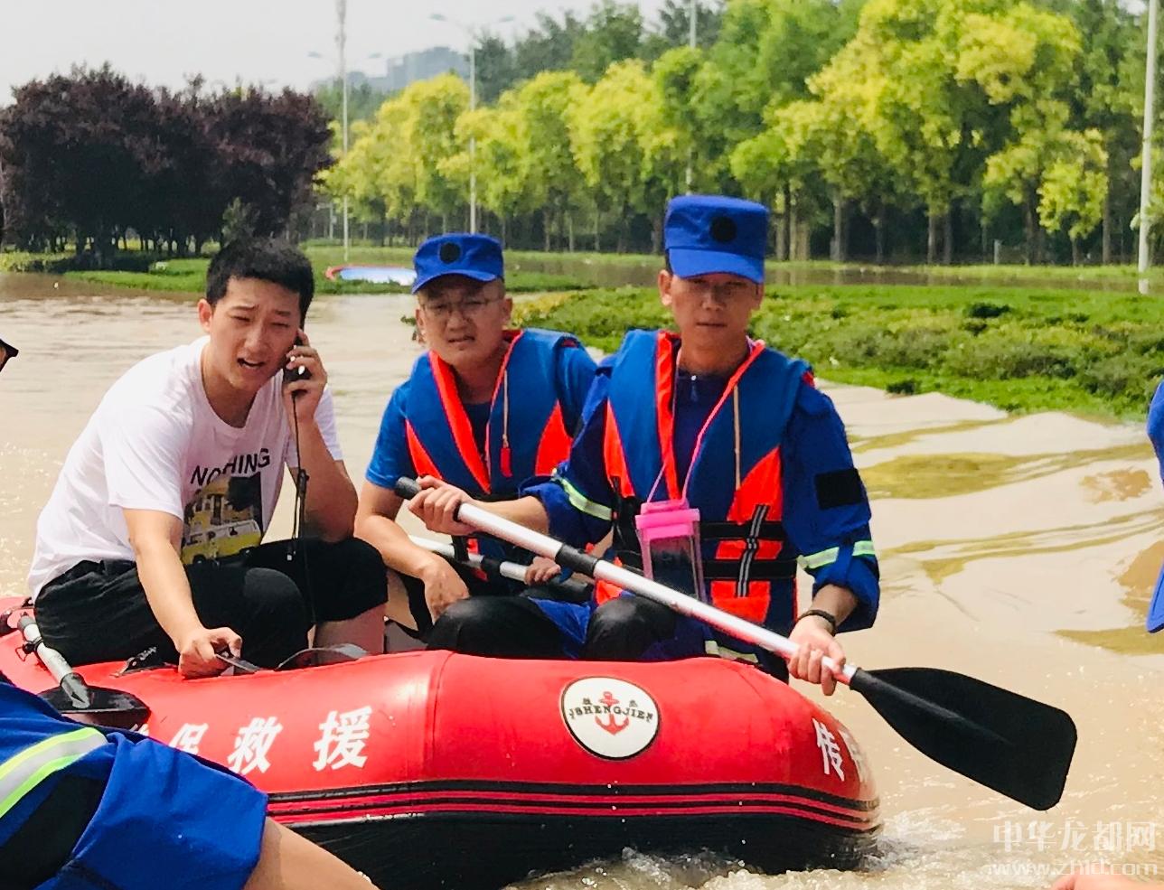 圖一,楊浩霖在新鄉(xiāng)市牧野區(qū)劃船到張辛莊村救援,后船劃槳者為楊浩霖。(圖片由本人提供)