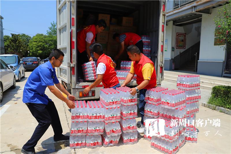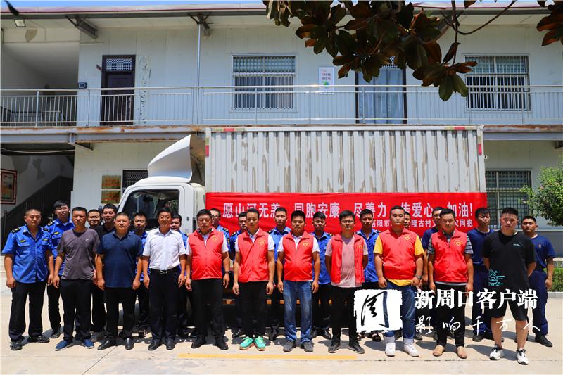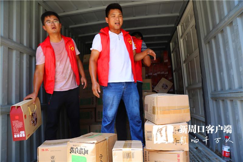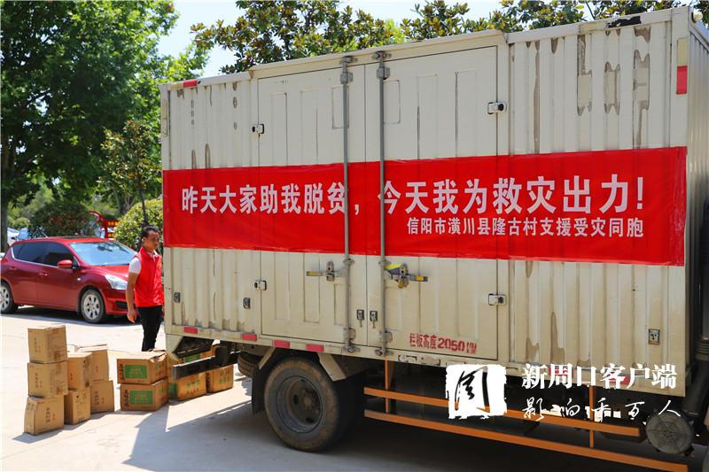 當(dāng)天中午,掛著印有“昨天大家助我脫貧,今天我為救災(zāi)出力!”條幅的防汛救災(zāi)物資運(yùn)輸車抵達(dá)周口港區(qū)。“要不是前兩天防御臺(tái)風(fēng)‘煙花’,我們?cè)缇蛠?lái)了。”隆古村黨支部書記段長(zhǎng)春一下車就連忙慰問眾人。一同前往的還有6位年輕力壯的志愿者,他們不辭勞苦,和港區(qū)消防、城管人員一起頂著烈日,用了半個(gè)多小時(shí)將滿車物資搬運(yùn)到位。