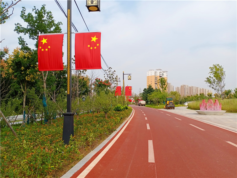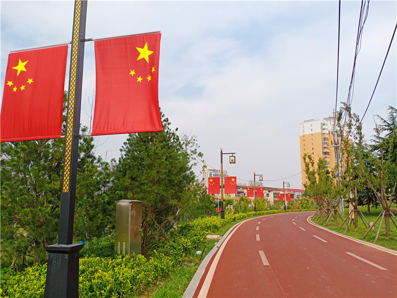10月3日,國(guó)慶假期的第三天,記者在周口市中心城區(qū)中州大道橋與周口大道橋之間的沙潁河北岸的河堤(潁河路)上看到,街道邊懸掛著鮮艷的五星紅旗,給節(jié)日里的周口增添一抹喜慶色彩,讓市民在游玩欣賞沙潁河迷人風(fēng)景的同時(shí),感受濃厚的節(jié)日氣氛。③6
