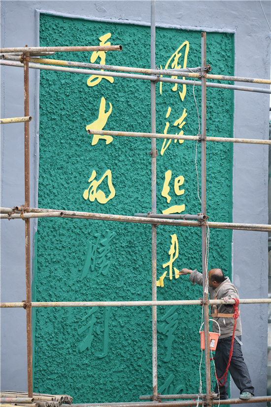 歷經(jīng)風(fēng)雨的文化墻激勵人們奮斗