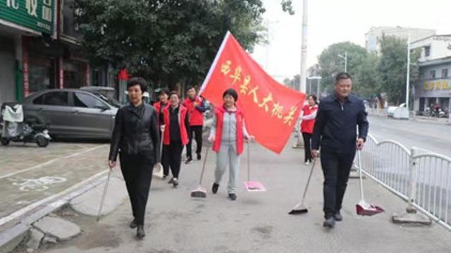 10月11日,西華縣人大常委會主任周曉燕帶領機關工作人員,深入分包區(qū)域的街道社區(qū)積極開展“創(chuàng)衛(wèi)”工作。