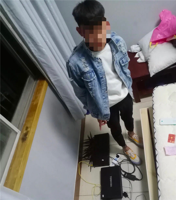 經(jīng)過3天3夜的蹲守,辦案民警摸清了犯罪嫌疑人的活動軌跡,10月13日晚上,吳臺派出所所長朱浩宇帶領(lǐng)民警賈坤陽等人果斷出擊,成功搗毀該涉詐窩點,將嫌疑人覃某宗和陳某欽抓獲,查獲“GOIP”設(shè)備1臺、電腦2臺、手機2部、路由器1臺、攝像頭1個。