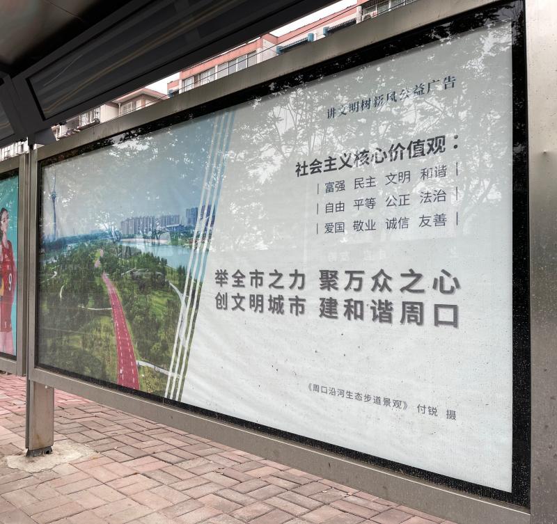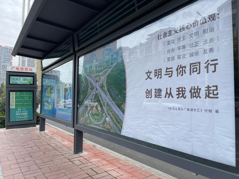 周口市公交總公司總經(jīng)理助理朱懷彬表示,為確保文明標語能讓市民抬眼可見、駐足即觀,目前,我市中心城區(qū)公交候車臺的公益廣告牌投放覆蓋率已超過50%。“煥然一新的公交站臺,既扮靚了周口的城市面貌,提升了市民的出行體驗,又潛移默化地把社會主義核心價值觀根植于市民內(nèi)心?!敝鞈驯蛘f。②10