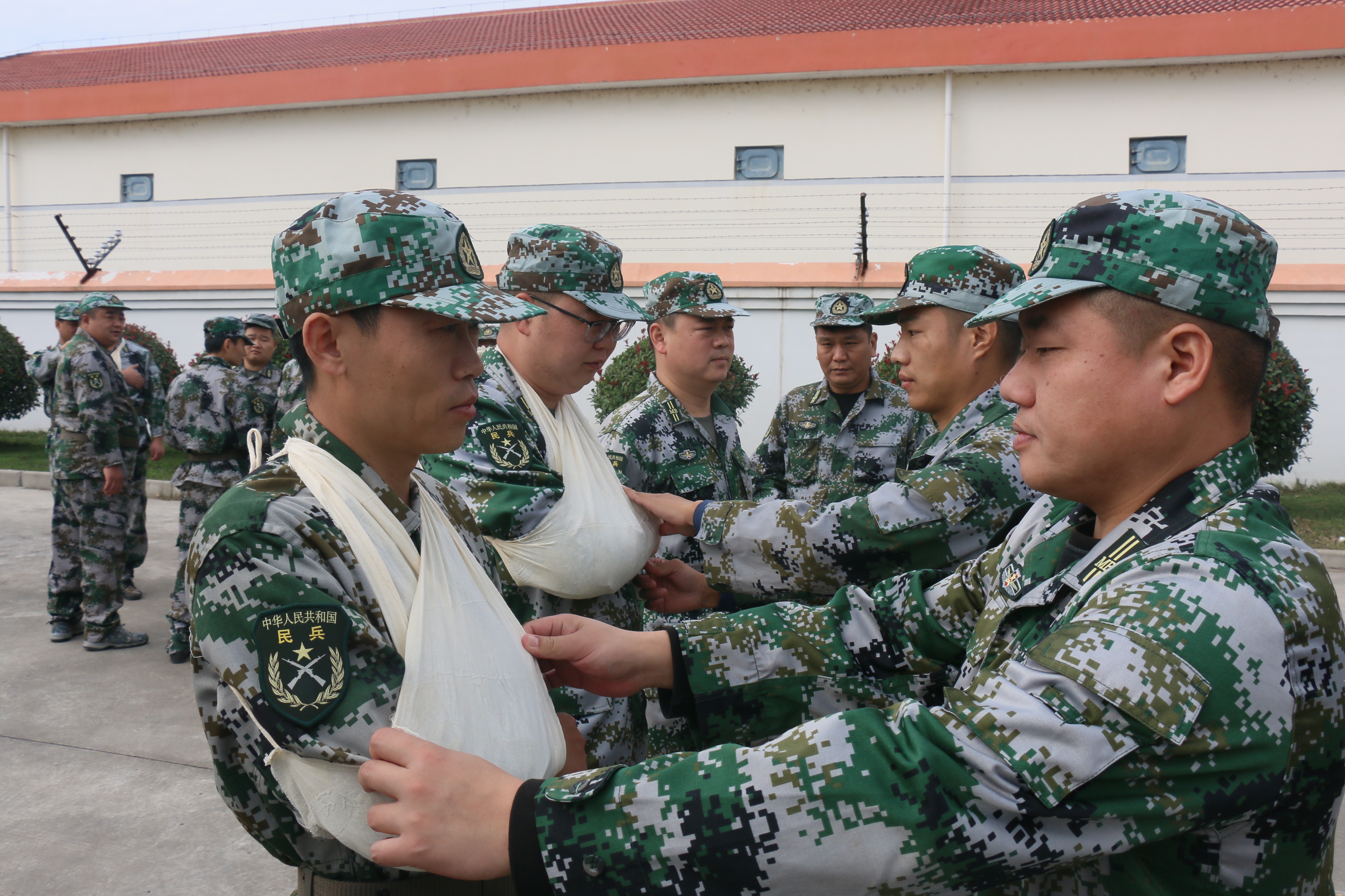 訓練過程中,全體民兵統(tǒng)一著迷彩服,軍容嚴整,在統(tǒng)一指揮下,開展隊列訓練、政治教育、負重徒步行軍、衛(wèi)生與救護、偽裝防護、防爆隊形和防爆器材使用等課目,多要素融合,錘煉民兵技能戰(zhàn)術本領和戰(zhàn)斗作風,提高民兵應急連的軍政素質和遂行多樣化軍事任務的能力。訓練場上,民兵們沒有絲毫的偷懶和松懈,積極投身訓練,在一次又一次的重復中,努力將動作做得更規(guī)范、更標準,訓練熱情高漲,比學趕超氛圍濃厚。