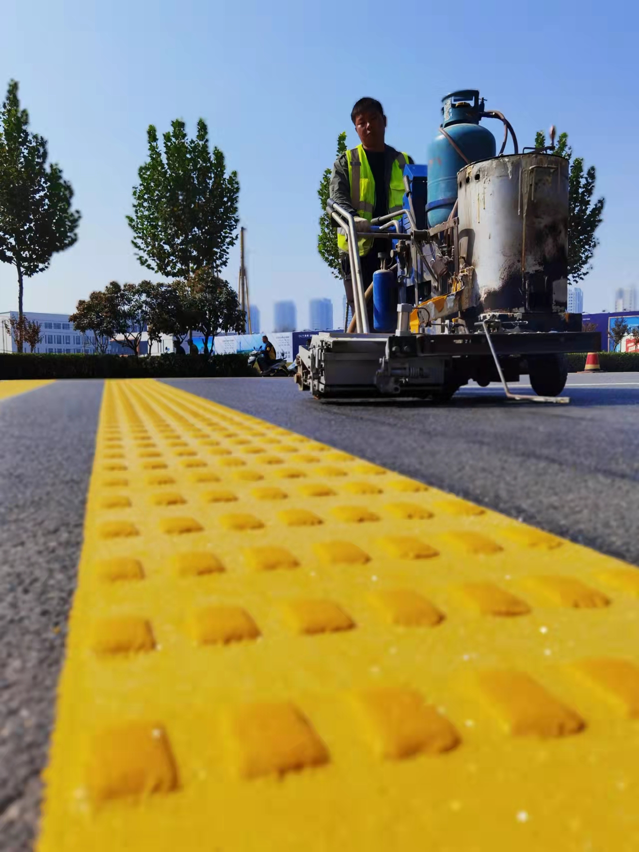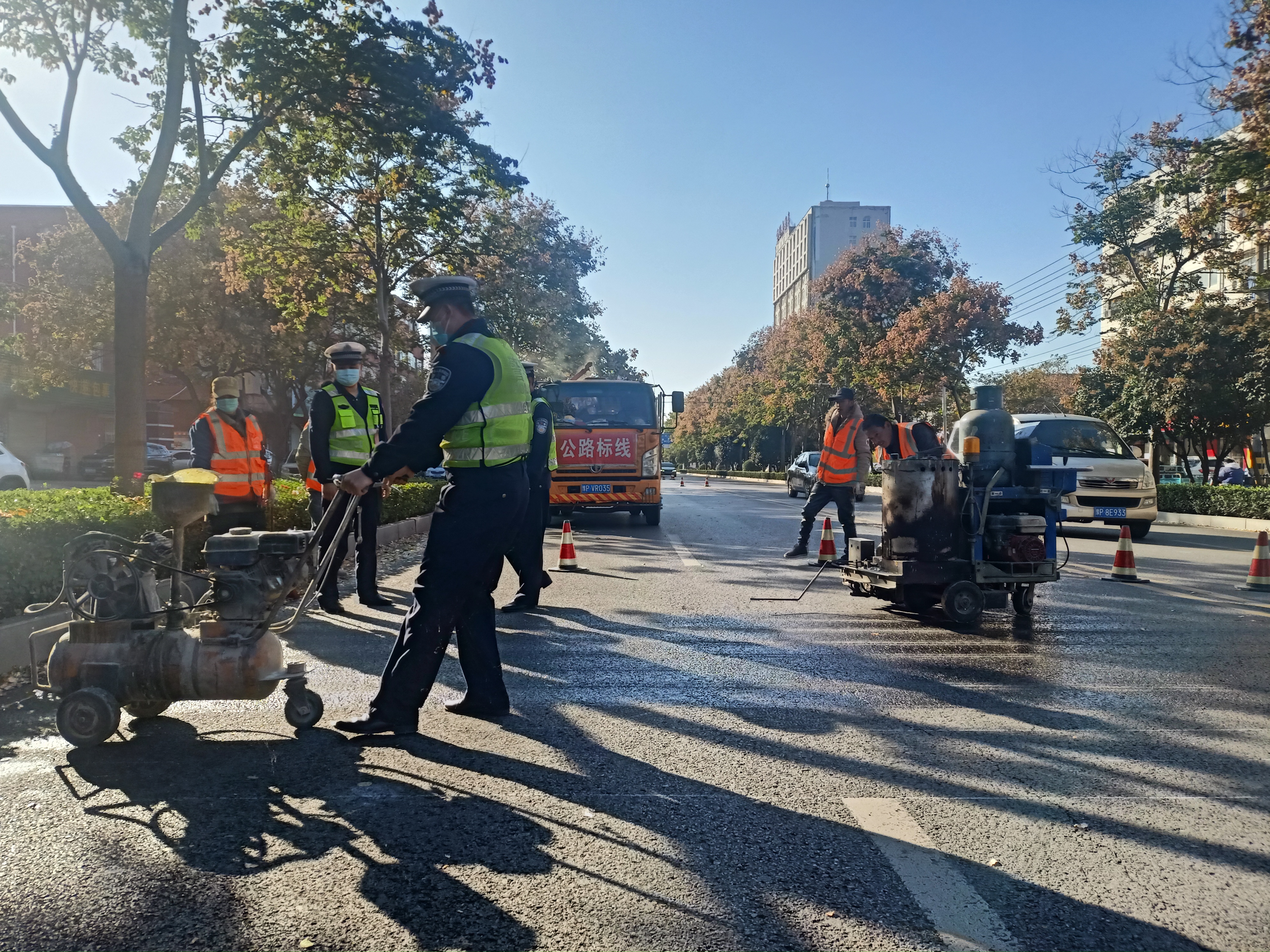 當(dāng)日下午,記者在黃河路看到,施工人員正在熟練地操作標(biāo)線機(jī),認(rèn)真細(xì)致地施劃減速震蕩標(biāo)線。市公安局交通管理支隊(duì)設(shè)施維護(hù)中心(以下簡(jiǎn)稱設(shè)施維護(hù)中心)工作人員黃勇說(shuō):“在創(chuàng)文期間,設(shè)施維護(hù)中心加大對(duì)道路護(hù)欄的清洗力度,完善交通信號(hào)燈的維護(hù),清除學(xué)校門(mén)口不合理的停車位,修剪遮擋交通設(shè)施的樹(shù)枝,排除路口的交通隱患?!?/p>