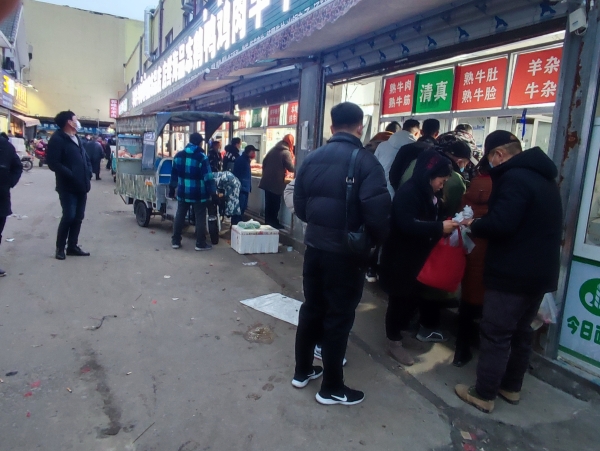 據(jù)黃淮市場(chǎng)的工作人員介紹,黃淮市場(chǎng)有超過(guò)3000家商戶,已全部接種新冠疫苗,并多次組織全員進(jìn)行核酸檢測(cè)?,F(xiàn)在臨近春節(jié),屬于高峰期,每天進(jìn)出的貨車(chē)量比平日翻倍,他們堅(jiān)持每天多次對(duì)進(jìn)入市場(chǎng)的商品進(jìn)行抽檢,對(duì)進(jìn)口凍品進(jìn)行摸底排查,確保食品健康安全。春節(jié)期間市場(chǎng)會(huì)繼續(xù)營(yíng)業(yè),保證市民需求。