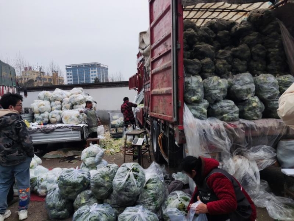 在市場(chǎng)入口,一輛輛載著各類(lèi)商品的大貨車(chē)正排著隊(duì)往里進(jìn),測(cè)溫、驗(yàn)證、登記、抽檢,進(jìn)入市場(chǎng)后,幾輛三輪車(chē)迅速圍上,開(kāi)始卸貨,一切都有條不紊?!斑@一車(chē)大蔥是市里十幾家飯店要的?!睆垘煾颠呅敦涍呎f(shuō),“過(guò)年有不少大飯店正常營(yíng)業(yè),現(xiàn)在就開(kāi)始備貨了。”當(dāng)被問(wèn)及現(xiàn)在和平常有什么不一樣時(shí),張師傅略顯疲憊的臉上露出了笑容,“肯定不一樣,平常兩天來(lái)一次,現(xiàn)在一天一次,一年到頭就現(xiàn)在最忙,辛苦幾天,掙錢(qián)過(guò)個(gè)好年”。