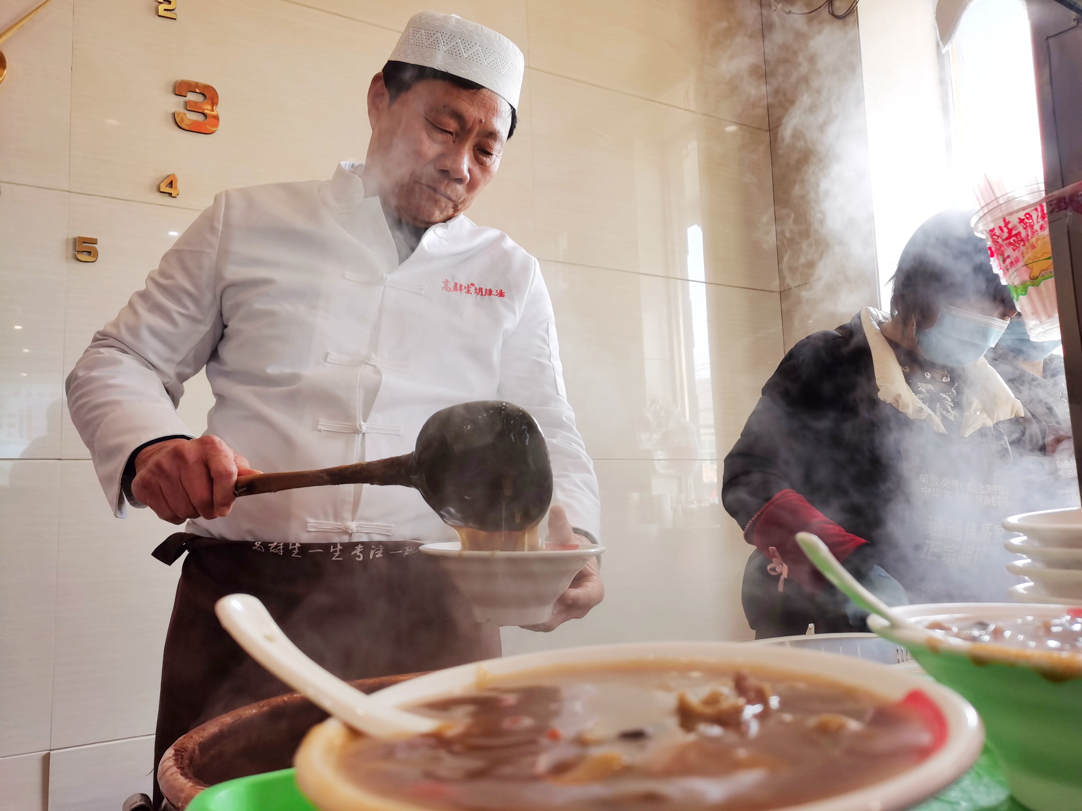 在老佟家胡辣湯店,趕在新年即將到來時(shí)喝湯的老百姓
