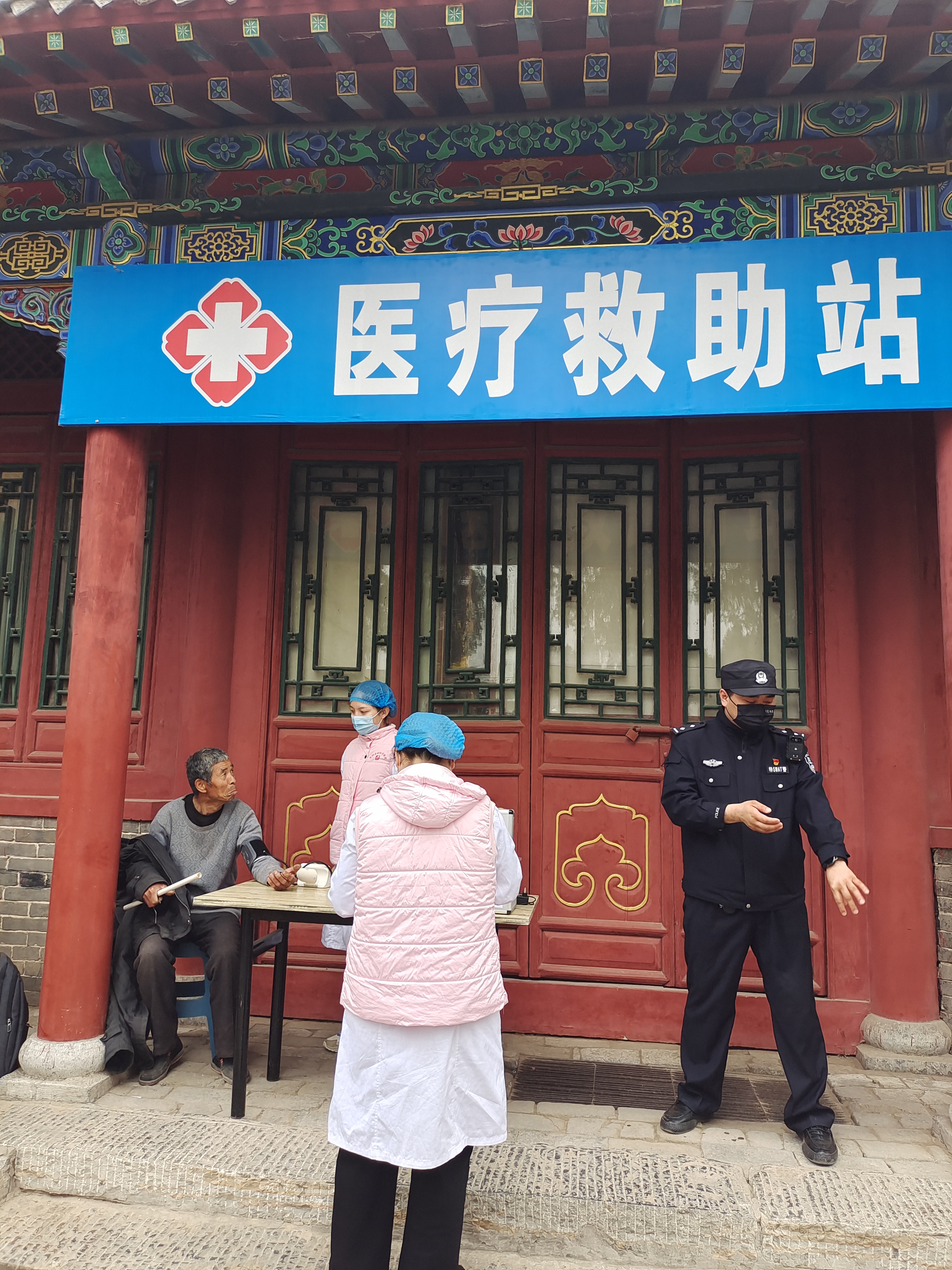 量血壓的姑娘叫蘇圓圓,據(jù)她介紹,全淮陽20多家醫(yī)院都派人在太昊陵各處設(shè)置“醫(yī)療救助站”,游客有任何不舒服可就近詢問觀察,各站都配有應(yīng)急藥箱,如有需要免費(fèi)使用?!斑@段時(shí)間人流量大,大家一定要遵守各項(xiàng)安全措施,避免意外發(fā)生。”蘇圓圓說。
