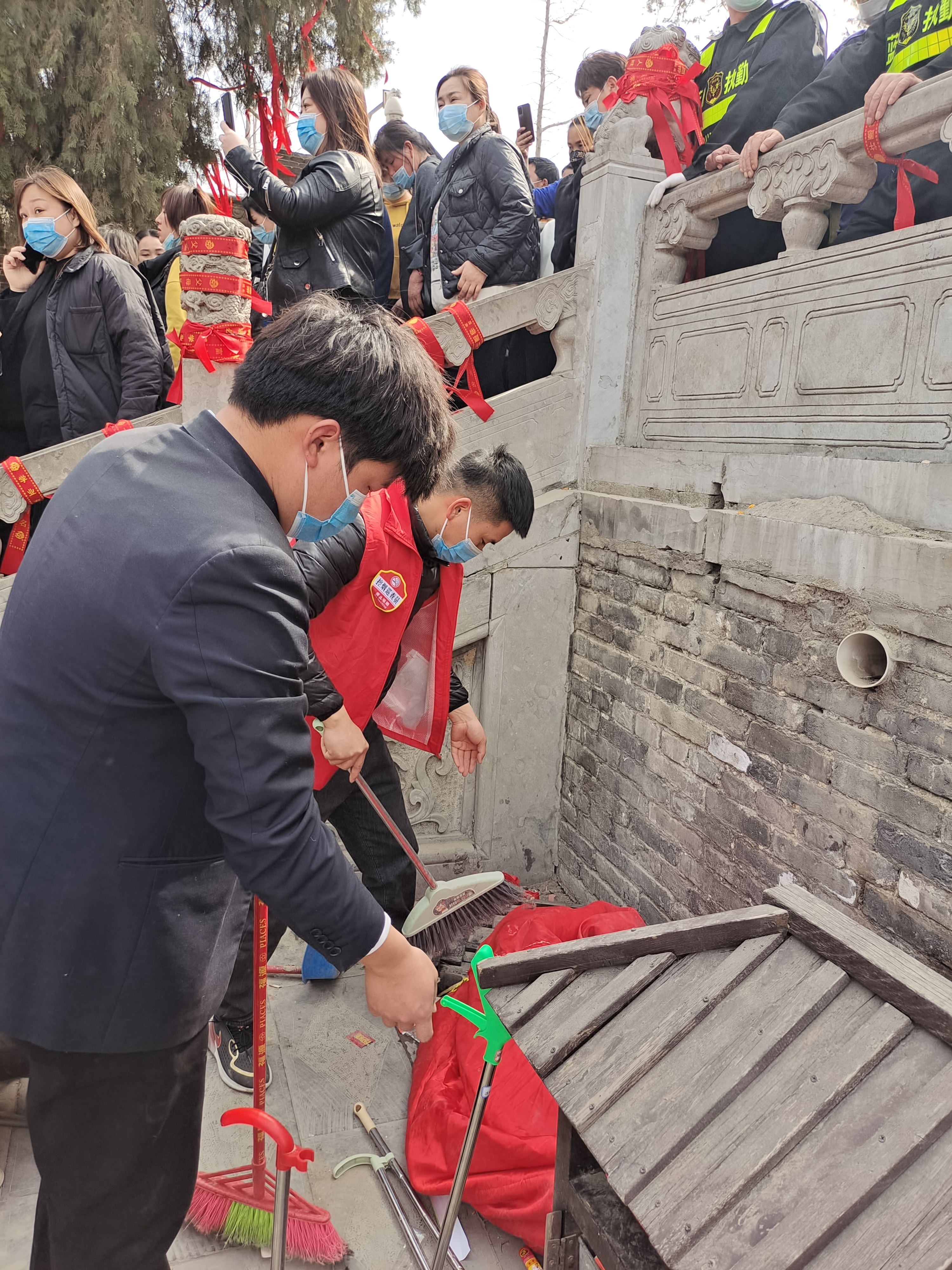 “請各位游客戴好口罩,不要扎堆,不要亂丟垃圾。”太昊陵里每走一段距離,就有提示音從喇叭里傳來。除了游客的個(gè)人自覺,志愿者也為景區(qū)美觀貢獻(xiàn)著力量。