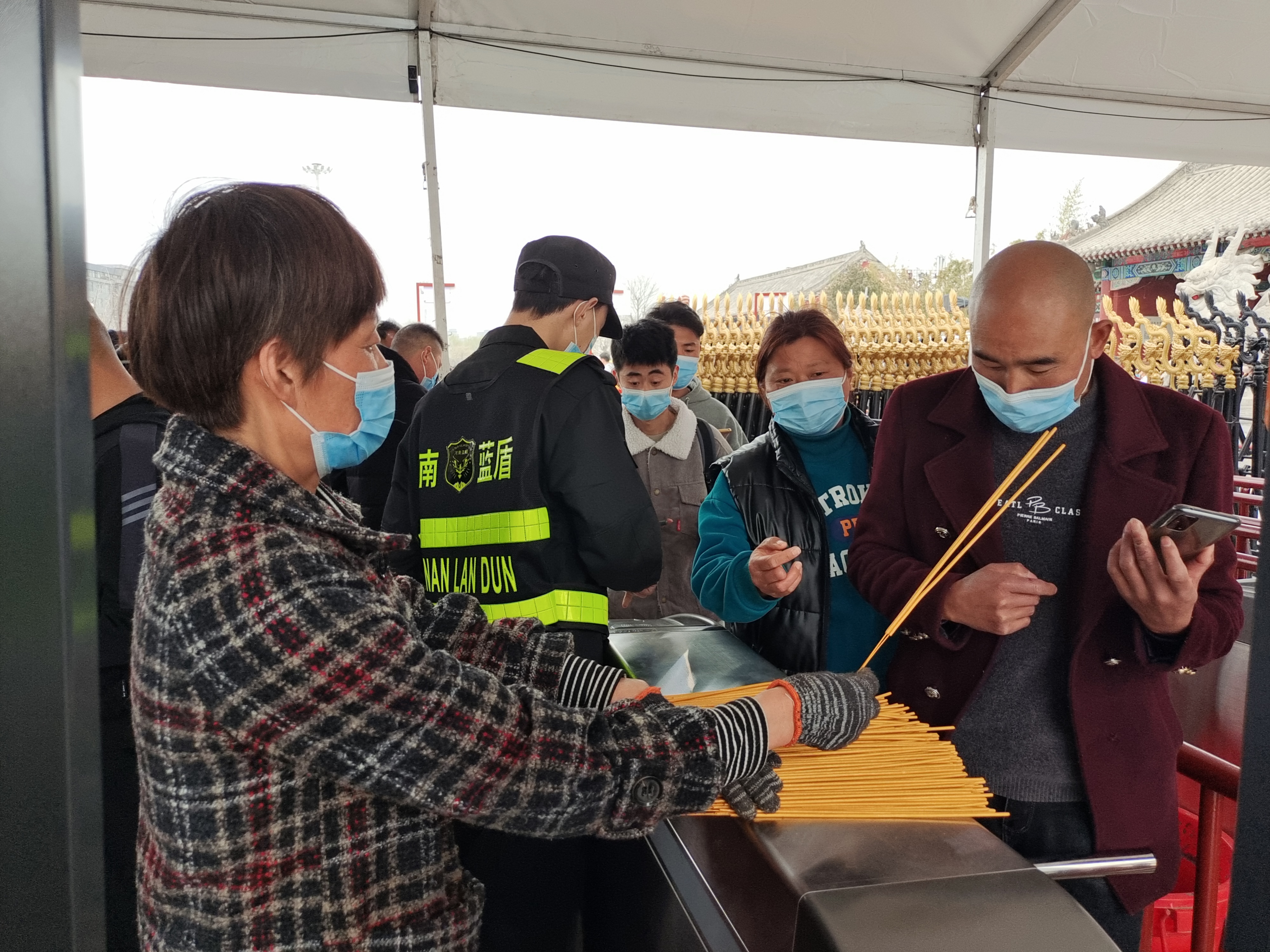 “這是您的祈福香,請拿好?!碧涣甑拿總€(gè)入口,既有專人檢查私自帶香行為,也有工作人員為游客免費(fèi)發(fā)放線香。家住淮陽區(qū)的李姐是其中一員,她早上5時(shí)30分就到達(dá)景區(qū),領(lǐng)取線香并整理,方便為游客發(fā)放。“只要還有游客來,我們就不休息,要把祈福的心愿送到他們手中,并引導(dǎo)他們文明燒香、文明祭祀?!崩罱阏f。