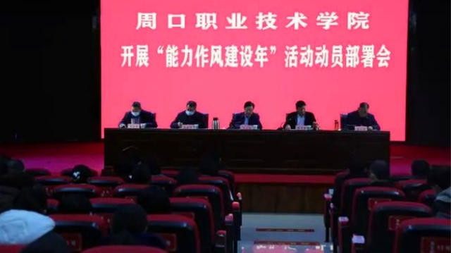 近日,周口職業(yè)技術(shù)學(xué)院召開“能力作風(fēng)建設(shè)年”活動動員部署會,全校副科級以上干部參加了會議。