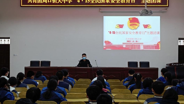 4月15日是第七個(gè)全民國(guó)家安全教育日。當(dāng)日,周口恒大中學(xué)舉辦“4·15全民國(guó)家安全教育日”主題團(tuán)課,進(jìn)一步推動(dòng)總體國(guó)家安全觀和國(guó)家安全法律法規(guī)走入廣大團(tuán)員青年,使國(guó)家安全意識(shí)深入人心。