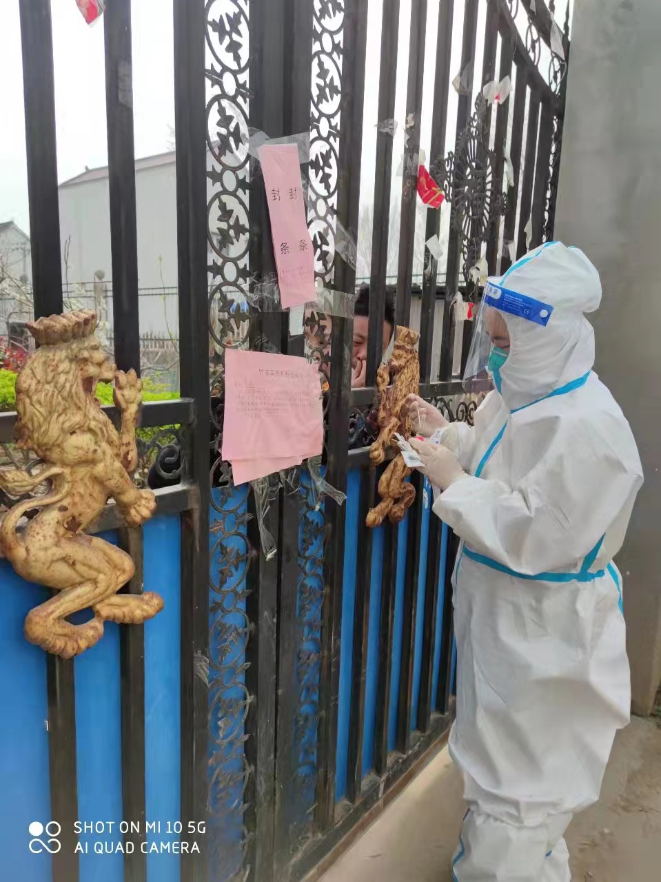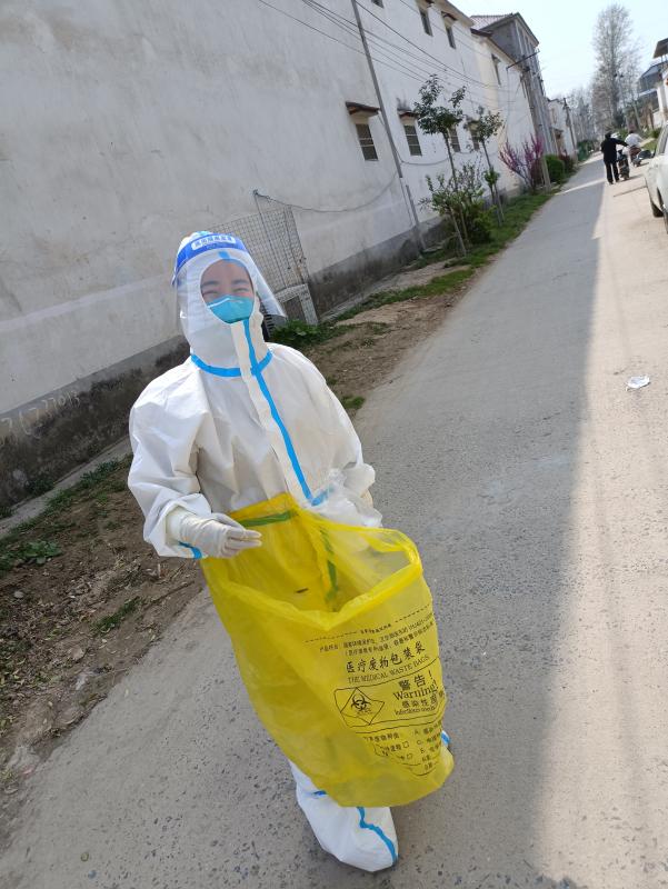 許夢(mèng)蝶她們?nèi)サ拇宸稚⑤^廣,從凌晨開始一個(gè)村挨一個(gè)村地跑下去,汗水很快濕透防護(hù)服,一般到下午2點(diǎn),前來采樣的村民會(huì)逐漸變少,但是饑腸轆轆的她卻不能就餐,因?yàn)榕紶栠€會(huì)有村民過來采樣,如果脫下再穿防護(hù)服肯定會(huì)耽擱村民的時(shí)間,“我們本來就是為人民服務(wù)的,我們等等無所謂,不能讓老百姓來等我們”,許夢(mèng)蝶當(dāng)時(shí)這樣想著,然后婉拒了工作人員的就餐邀請(qǐng),等沒有村民來采樣了再休息。她們吃完飯與大部隊(duì)集合的路上,突然隊(duì)長(zhǎng)接到鄉(xiāng)長(zhǎng)的電話說人手不夠讓回去采集封控村,她們立刻掉頭回去,沒有任何怨言,沒有任何要求。到了以后工作人員通知說這個(gè)村500多人要入戶采集,她們立即穿上防護(hù)服就開始了工作,和村干部及志愿者相互配合,拿著未集中核酸采樣的群眾名單,不停穿梭在村里的大街小巷、房前屋后、床邊炕頭進(jìn)行現(xiàn)場(chǎng)核酸采樣。臨走時(shí)叮囑群眾日常防護(hù)不能大意,勤洗手、勤消毒、戴口罩,卻忘記了我們自己已經(jīng)濕透的衣服還有灌鉛似的雙腿……