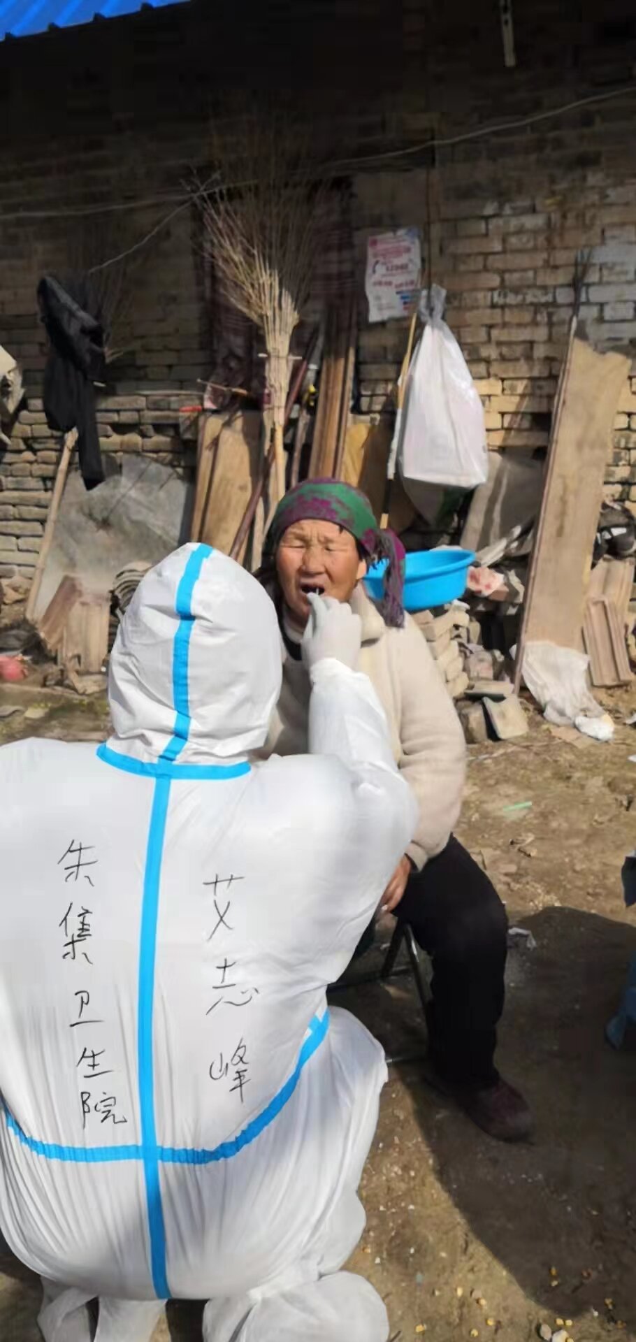 朱集鄉(xiāng)衛(wèi)生院響應(yīng)區(qū)衛(wèi)健委號召,到太康縣馬頭鎮(zhèn)做核酸采集工作,艾付軍和兩位同事來到后寨村卡點進行核酸采集。由于后寨村卡點把守兩個行政村,人數(shù)較多,兩個行政村需要分開進行核酸采集,一個行政村需兩名醫(yī)務(wù)人員,醫(yī)務(wù)人員不足,艾付軍就一人干起了掃碼、核酸采集、消毒工作,直到完成了幾百人的核酸采集和隔離人員挨家挨戶采集任務(wù)后,才有時間休息、上廁所。后來,十一輪核酸采集工作結(jié)束,因工作變動,需要重新分配采集人員時,領(lǐng)導(dǎo)才知道艾付軍一直是孤軍奮戰(zhàn)。