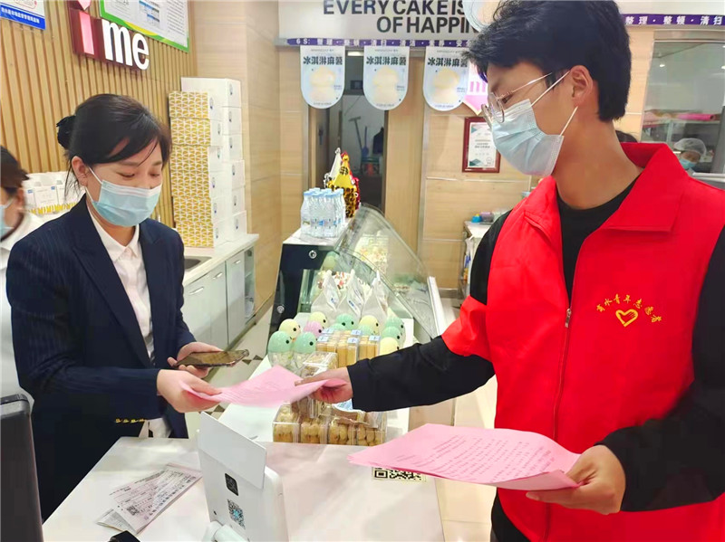 “你們辛苦了,來我們店疫情防控排查,我們會積極配合,落實好兩碼、測體溫、出入登記,”“謝謝你們提醒,我們會積極配合,”“有你們青年志愿者為我們保駕護(hù)航真是太好了!”各轄區(qū)商戶們紛紛給予青年志愿者們肯定和感謝。在宣傳過程中,志愿者們主動為沒有攜帶口罩的群眾發(fā)放口罩,引導(dǎo)群眾健康防護(hù)習(xí)慣。