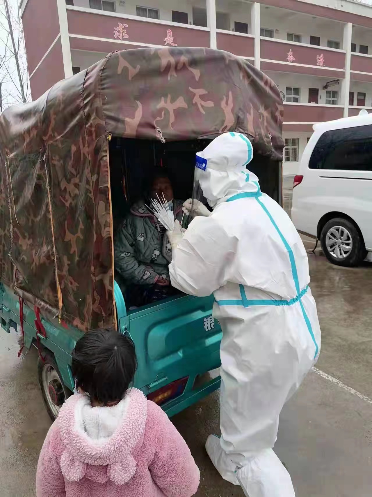 3月22日接到援太任務(wù)后,張俊華迅速和全縣200名醫(yī)護(hù)人員趕赴太康,并于次日凌晨3時(shí)醫(yī)療隊(duì)到達(dá)太康?!拔覀兠刻炝璩?點(diǎn)起床,5點(diǎn)到達(dá)采集點(diǎn)開始工作,不敢多吃飯,不敢多喝水,擔(dān)心穿脫防護(hù)服延誤采樣時(shí)間。中午餓了,簡單吃點(diǎn)東西后繼續(xù)工作……”張俊華回憶道。幾天后,為避免交叉感染,按照市衛(wèi)健委要求,他們?nèi)霊舨杉怂針颖?。張俊華和其他隊(duì)員背著用塑料袋制成的背包,裝上棉簽和取樣管,一家一家地跑。一天下來,他們的腳上磨出了泡,臉上、手上都是勒痕。面對(duì)各種困難,他們迅速調(diào)整方案,一邊和社區(qū)人員組織群眾維持秩序,一邊進(jìn)行核酸采集工作。工作臨近結(jié)束時(shí),太康縣板橋鎮(zhèn)和常營鎮(zhèn)政府為他們頒發(fā)了榮譽(yù)證書。