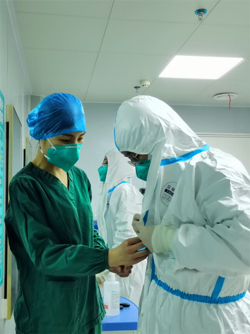 在岐伯山醫(yī)院,劉琦的主要工作職責(zé)是對病區(qū)工作人員全流程監(jiān)督、指導(dǎo)各區(qū)域工作人員防護(hù)用品的正確使用,確保醫(yī)務(wù)人員的安全,同時,對醫(yī)務(wù)人員工作全過程各項制度落實進(jìn)行督導(dǎo),指導(dǎo)并開展醫(yī)院感染各項監(jiān)測工作,應(yīng)急處理各類突發(fā)事件,對存在問題查找原因,保障各項感控措施落實到位。