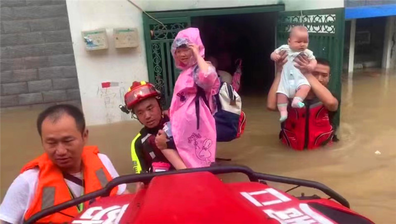 在2020年的抗洪戰(zhàn)斗中,晉松奇率領5人增援小組,星夜馳援河南信陽、安徽六安兩地。在信陽,小組累計出動舟艇13艘次,疏散人員63人、營救49人,共計112人,連續(xù)救援26小時;在安徽,小組開展作戰(zhàn)行動16次,營救被洪水圍困的群眾183人。在轉(zhuǎn)移被困人員的戰(zhàn)斗中,他小心抱起嬰兒的畫面被拍下發(fā)至網(wǎng)上,被網(wǎng)友評價“你小心的樣子,真帥!”談起這段視頻,晉松奇笑著說:“孩子太小了,抱著的時候特別緊張,就一直托著,但因為水太深,還是踩空一步,心里當時咯噔一下。后來看到視頻下面有個評論特別有意思,說我抱孩子像抱著炸彈一樣。”2021年7月中下旬,晉松奇又一次主動遞交請戰(zhàn)書加入周口消防支隊防汛救災突擊隊,前往扶溝前置備勤。帶隊組建舟艇搜救小組,挨家挨戶搜尋200多家農(nóng)戶,轉(zhuǎn)移受困群眾13名。