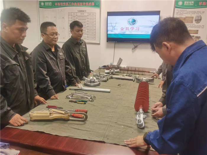 學(xué)習(xí)中,該公司輸電運(yùn)維支撐中心五級(jí)職員鄧建國(guó)向大家講解了常用輸電線路金具的種類及用途,包括絕緣子、懸垂線夾、連接工具的介紹和使用。