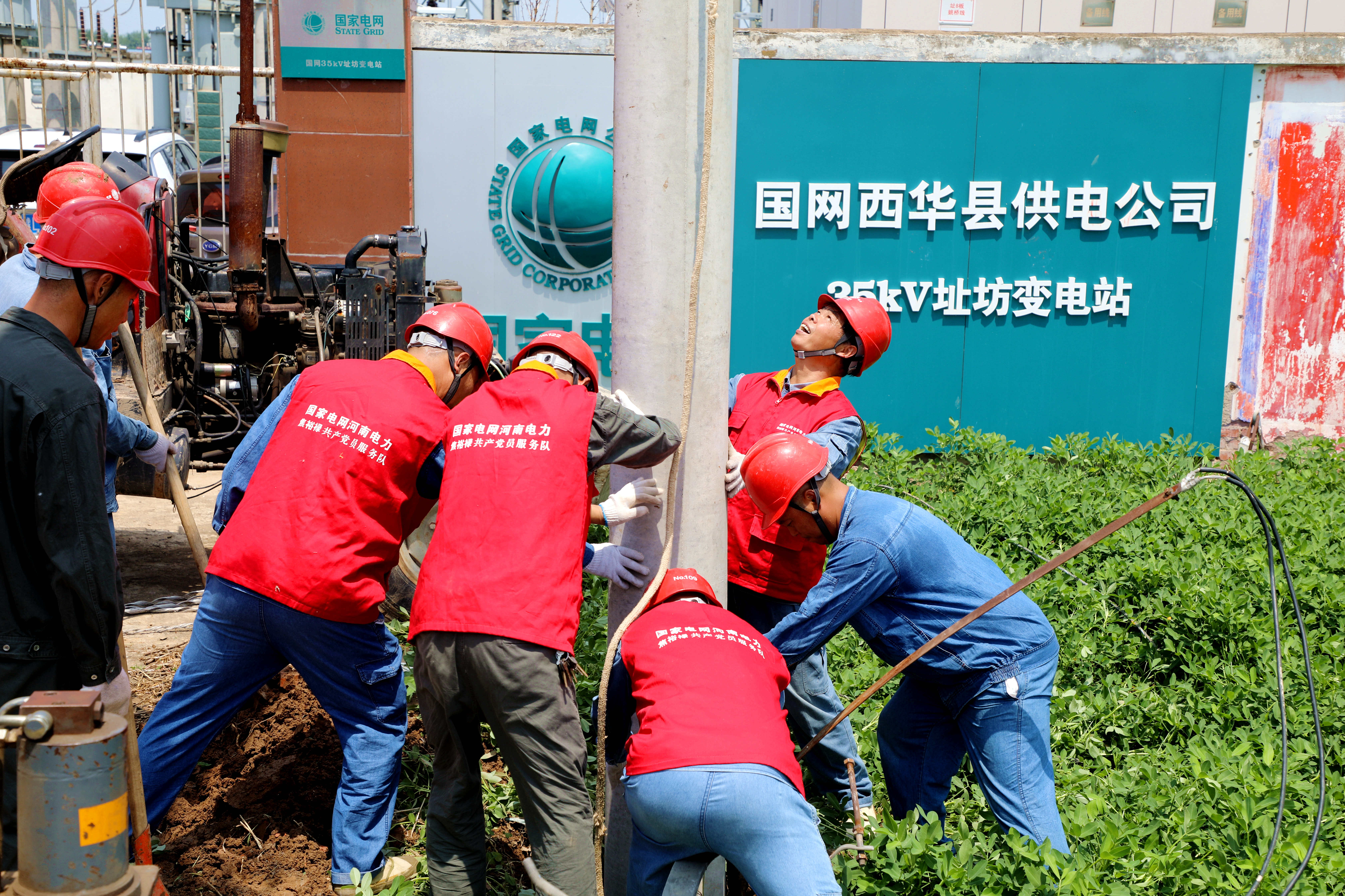 在35千伏址坊變電站10千伏灣張線出線倒桿緊急搶修現(xiàn)場,焦裕祿共產(chǎn)黨員服務(wù)隊沖在最前線,戰(zhàn)高溫、斗酷暑,將原電桿位置遷移,在安全地點重新立桿接線,高效完成牽引、挖坑、立桿、填土、鞏固、緊線等搶修工序。經(jīng)過連續(xù)奮戰(zhàn),7月26日20時06分因災(zāi)停電線路全面恢復(fù)供電。③9