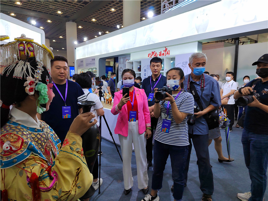 中國(guó)非物質(zhì)文化遺產(chǎn)博覽會(huì),每?jī)赡昱e辦一屆,是非遺領(lǐng)域的全國(guó)性重要品牌活動(dòng),已成為展示非遺保護(hù)成果、宣傳非遺保護(hù)理念、引領(lǐng)非遺保護(hù)工作的重要平臺(tái)。本屆非物質(zhì)文化遺產(chǎn)博覽會(huì)為期5天,河南省有16個(gè)非遺項(xiàng)目、4個(gè)非遺美食企業(yè)參展,布置在文化底蘊(yùn)深厚的“行走河南·讀懂中國(guó)”展區(qū)?;搓柡谔?、仰韶彩陶、唐三彩、魯山窯、汝瓷、鈞瓷、登封窯、當(dāng)陽峪絞胎瓷、澄泥硯、浚縣泥咕咕燒制技藝在展廳一一亮相?;搓柡谔諢萍妓囀〖?jí)傳承人張輝攜帶的部分作品以大氣、精美的文化底蘊(yùn)深深吸引著人們觀賞,各派非遺戲曲傳人也紛紛捧起他的黑陶作品展示中原古老的黑陶藝術(shù)文化。②15