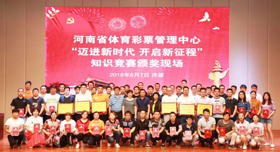 2018年6月,河南省體彩中心“邁進(jìn)新時(shí)代 開啟新征程”知識(shí)競(jìng)賽頒獎(jiǎng)現(xiàn)場(chǎng)