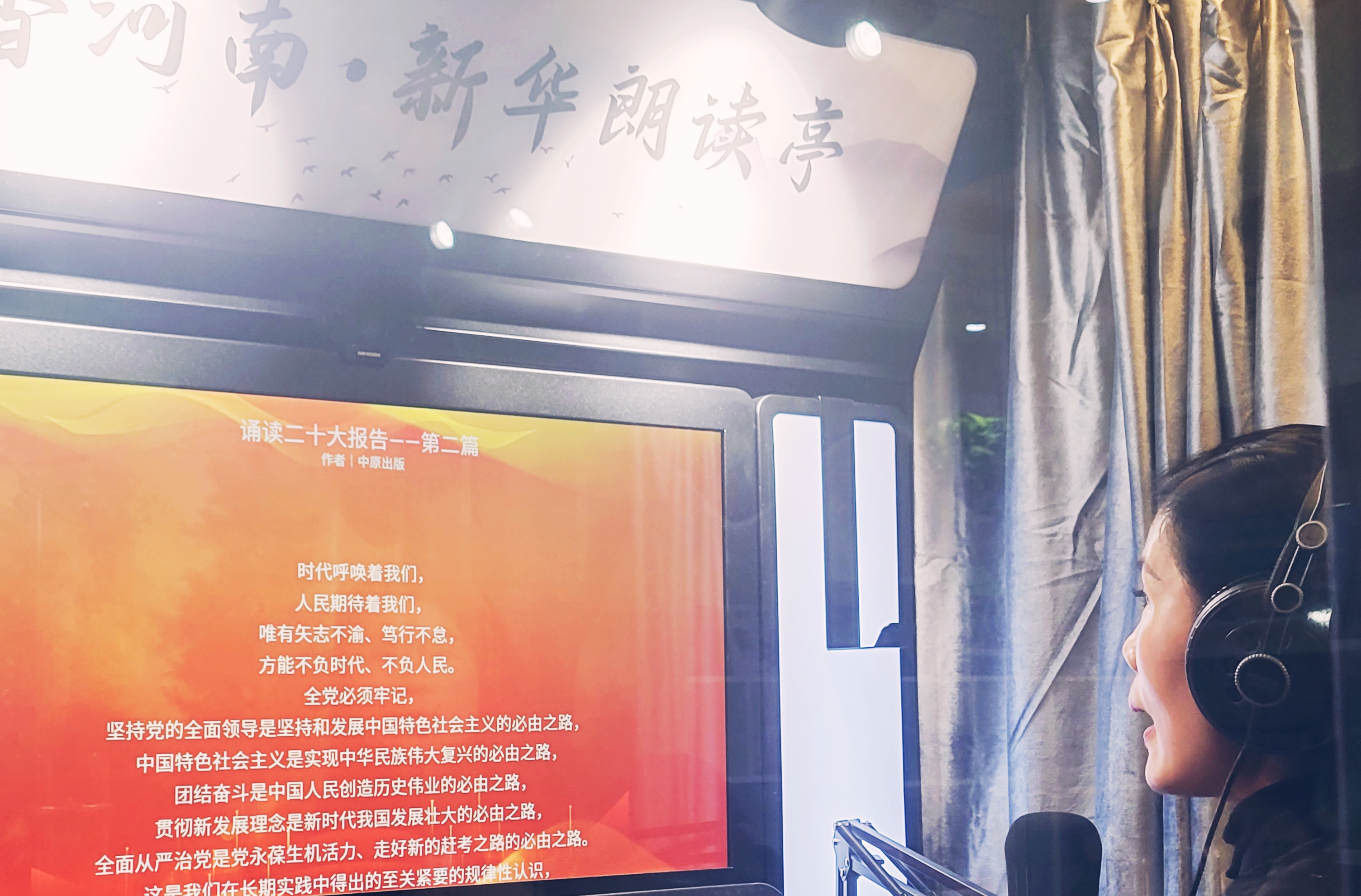 “堅持黨的全面領導是堅持和發(fā)展中國特色社會主義的必由之路……”11月3日,在位于項城市商城路與西大街交叉口的新華書店誦讀亭內,誦讀愛好者年秋燕正在選讀黨的二十大報告原文,其深情且鏗鏘有力的誦讀聲令人如癡如醉。