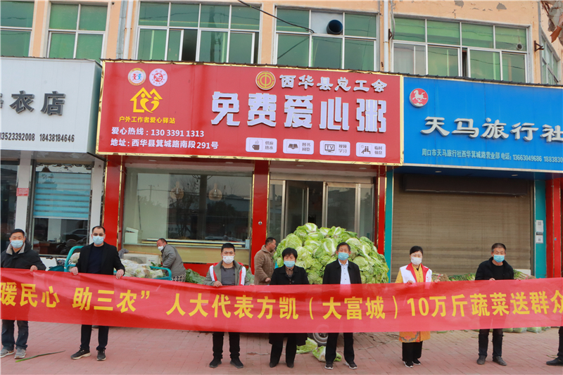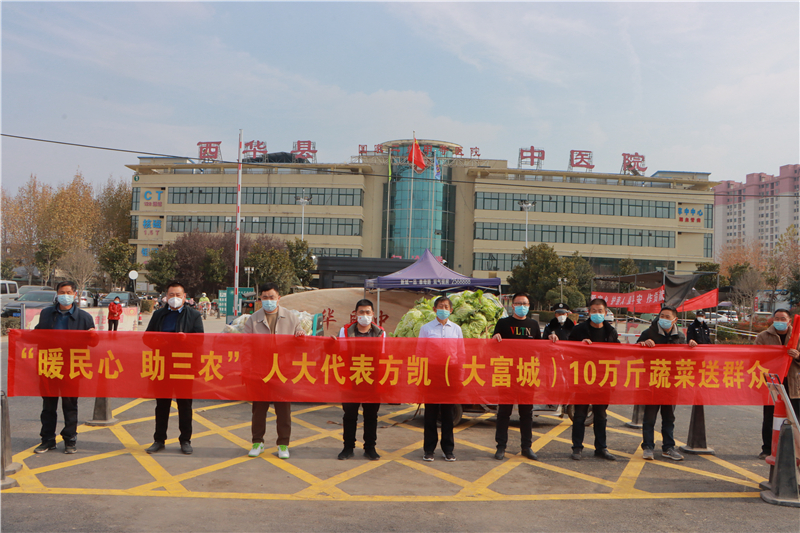 近日,方凱了解到西華縣黃橋鄉(xiāng)菜農(nóng)蔬菜滯銷的問題,便立即到現(xiàn)場察看,當即決定幫助菜農(nóng)解決蔬菜滯銷難題,購買10萬斤蔬菜,并將這些蔬菜捐贈給縣人民醫(yī)院、中醫(yī)院、敬老院等單位。